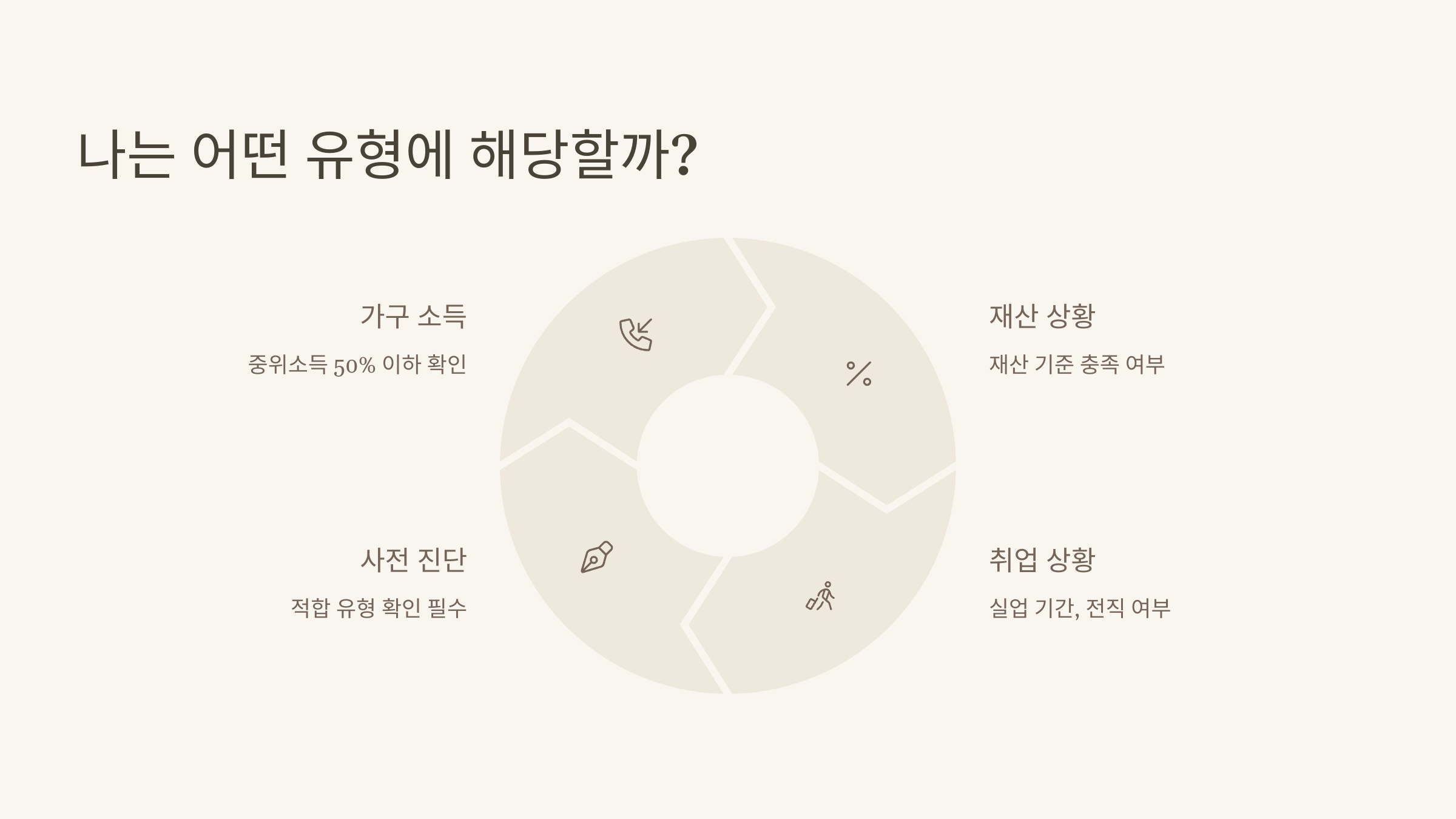 - 내 소득·재산 기준이 중위소득 50% 이하인지 확인