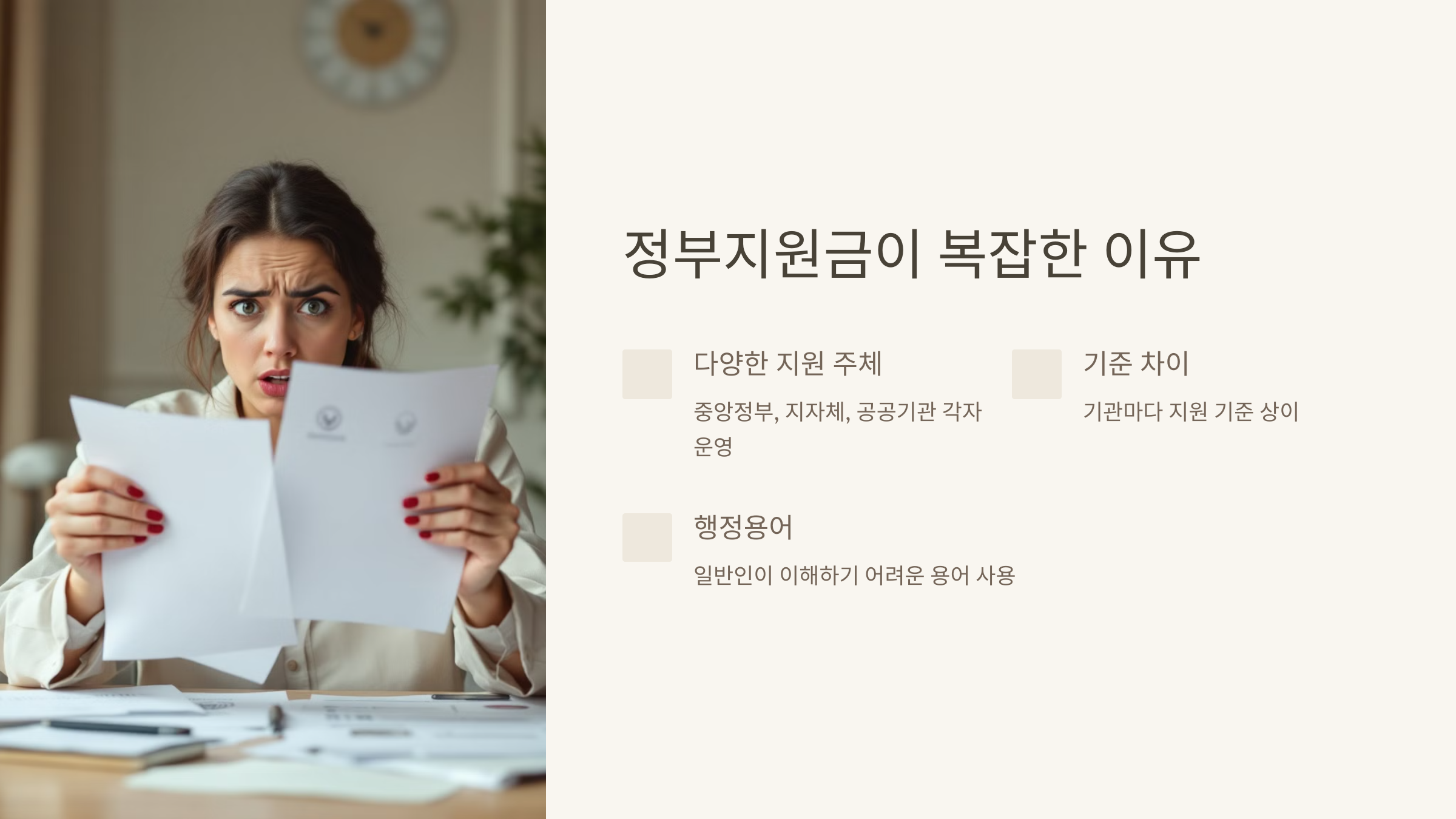 진짜 궁금했어요. 왜 정부지원금은 이렇게 알아보기 어렵고, 신청도 복잡할까요? 그 이유는 지원 주체가 한 군데가 아니라는 점 때문이에요. 중앙정부, 지자체, 공공기관, 부처 등 각자 따로따로 운영하다 보니 기준도 다르고, 사이트도 제각각이죠. 게다가 공고문은 대부분 행정용어로 작성돼서 일반인 입장에선 어려운 게 당연하더라고요. 그래서 우리는 복잡함을 단순화하는 게 핵심이에요!