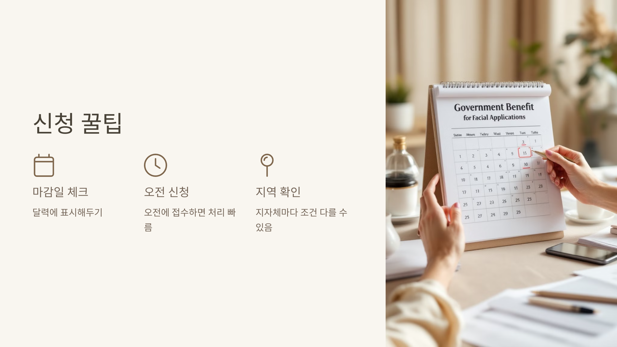 신청하면서 이런 디테일한 팁 놓치면 아까워요. 실제로 작은 실수 때문에 탈락하는 경우도 많거든요. 아래 꿀팁들 체크해 보세요!
