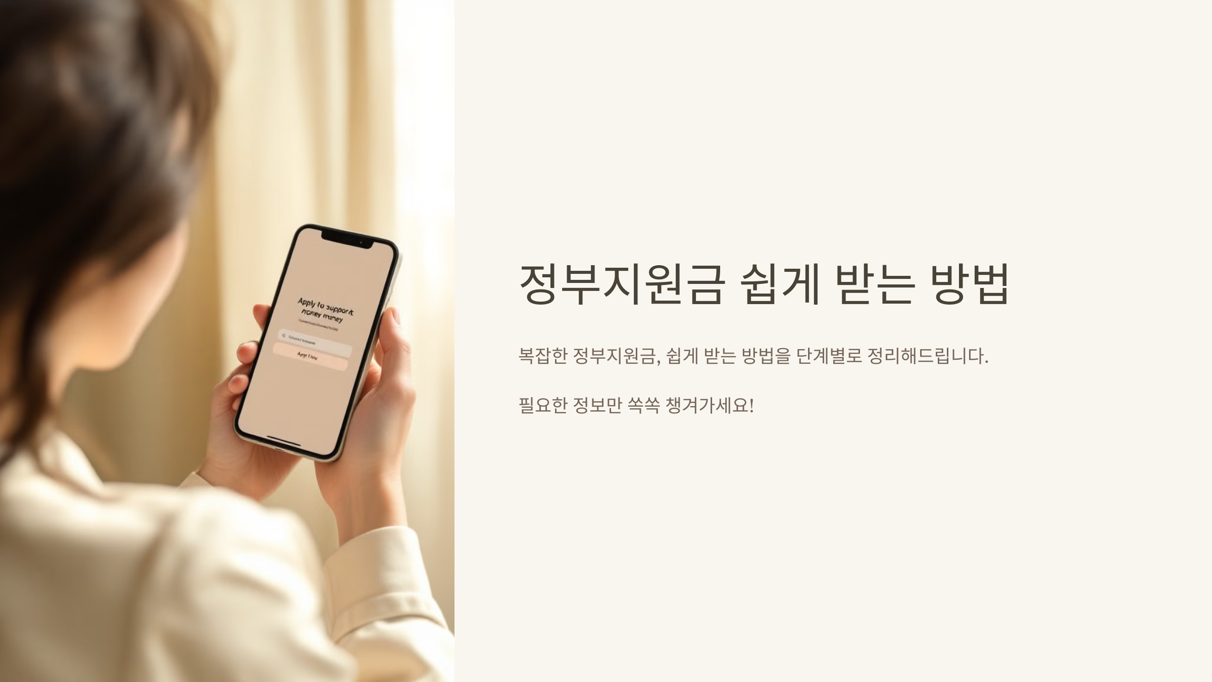 안녕하세요! 요즘 뉴스 보면 정부에서 지원금을 많이 푼다고 하는데, 막상 '어떻게 받지?' 하고 멈칫하게 되지 않으세요? 저도 그랬어요. 사이트마다 용어도 다르고, 신청방법도 제각각이라 한참 헤맸던 기억이 나네요. 그런데 한번 정리하고 나니까, 생각보다 간단하더라고요. 그래서 오늘은 저처럼 헷갈렸던 분들을 위해 복잡한 정부지원금, 쉽게 받는 방법을 단계별로 쏙쏙 정리해 드릴게요. 복잡함은 저한테 맡기시고, 여러분은 필요한 정보만 쏙쏙 챙겨가세요!