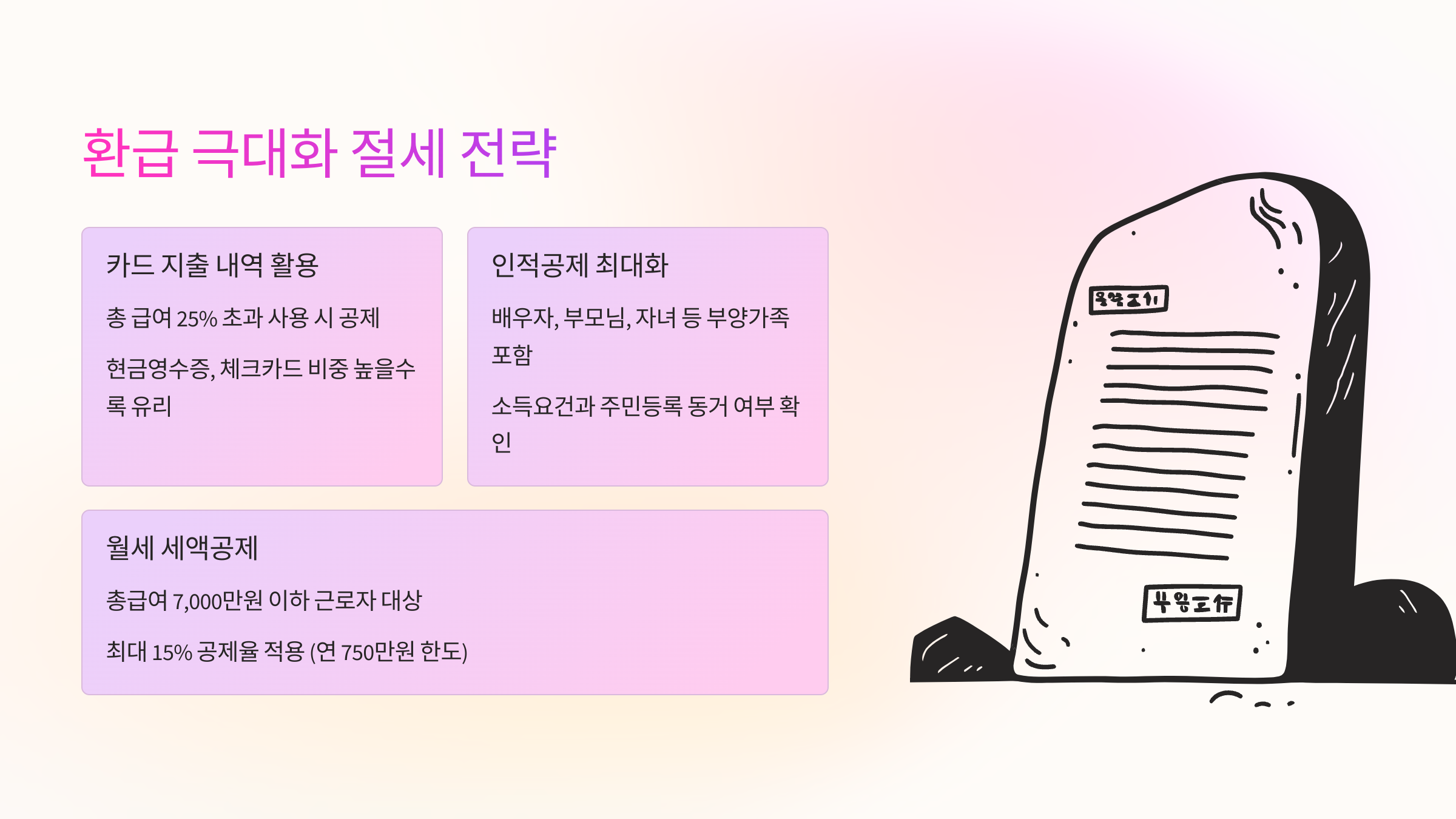 다음 파트에서는 환급금을 더 많이 받기 위한 절세 전략을 알려드릴게요.