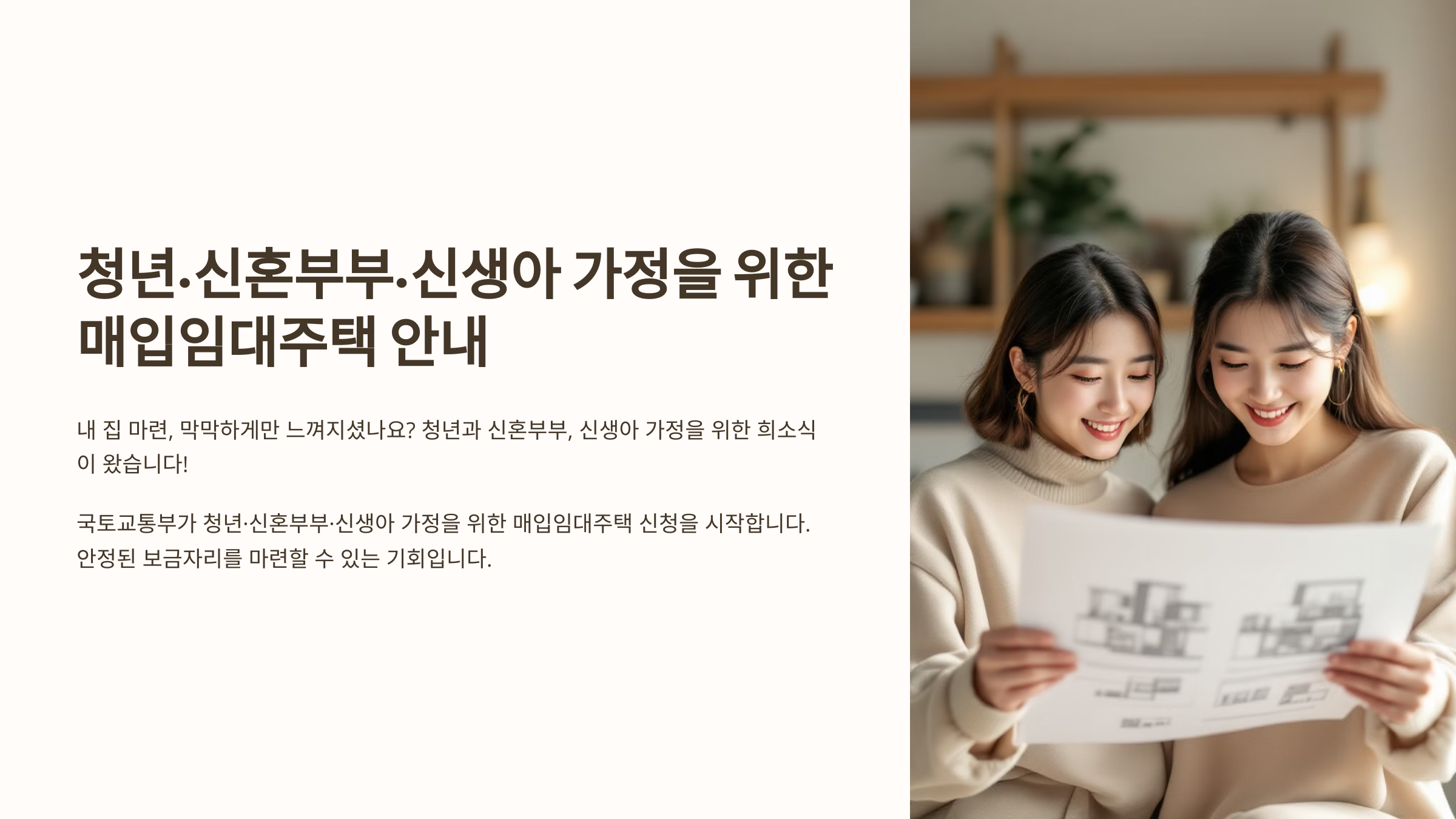 내 집 마련, 막막하게만 느껴지셨나요? 청년과 신혼부부, 신생아 가정을 위한 희소식이 왔습니다!